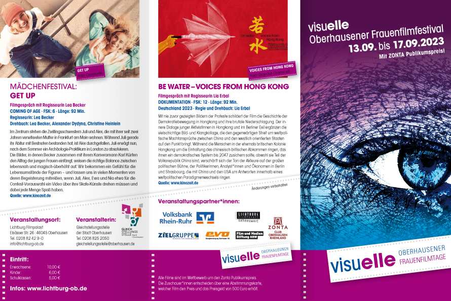 visuelleMit der Namensfindung für die ersten Oberhausener Frauenfilmtage 2013 fing alles an. Seither entwickeln wir nicht nur alljährlich alle Motive und Medien, sondern gehören auch mit großer Freude zur Planungsgruppe.